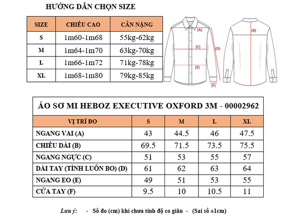 Áo sơ mi nam Heboz Executive oxford 3M - 00002962