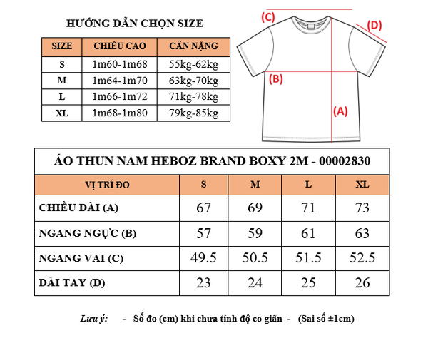 Áo thun nam Heboz Brand Boxy 2M - 00002830 là lựa chọn hoàn hảo cho những chàng trai yêu thích phong cách thoải mái nhưng vẫn giữ được sự tinh tế. Sản phẩm được thiết kế với form boxy rộng (phù hợp 55–85kg), mang lại cảm giác năng động và dễ dàng phối hợp cùng nhiều loại quần từ jeans, jogger đến quần short.
