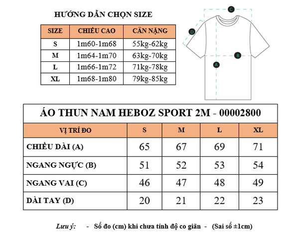 Áo thun nam Heboz Sport 2M - 00002800 là lựa chọn hoàn hảo cho các chàng trai yêu thích sự năng động và khỏe khoắn. Thiết kế slim fit ôm vừa vặn (55–85kg), chất liệu vải thun thể thao hạt mè thoáng khí, co giãn và thấm hút mồ hôi tốt, mang lại cảm giác thoải mái khi vận động.